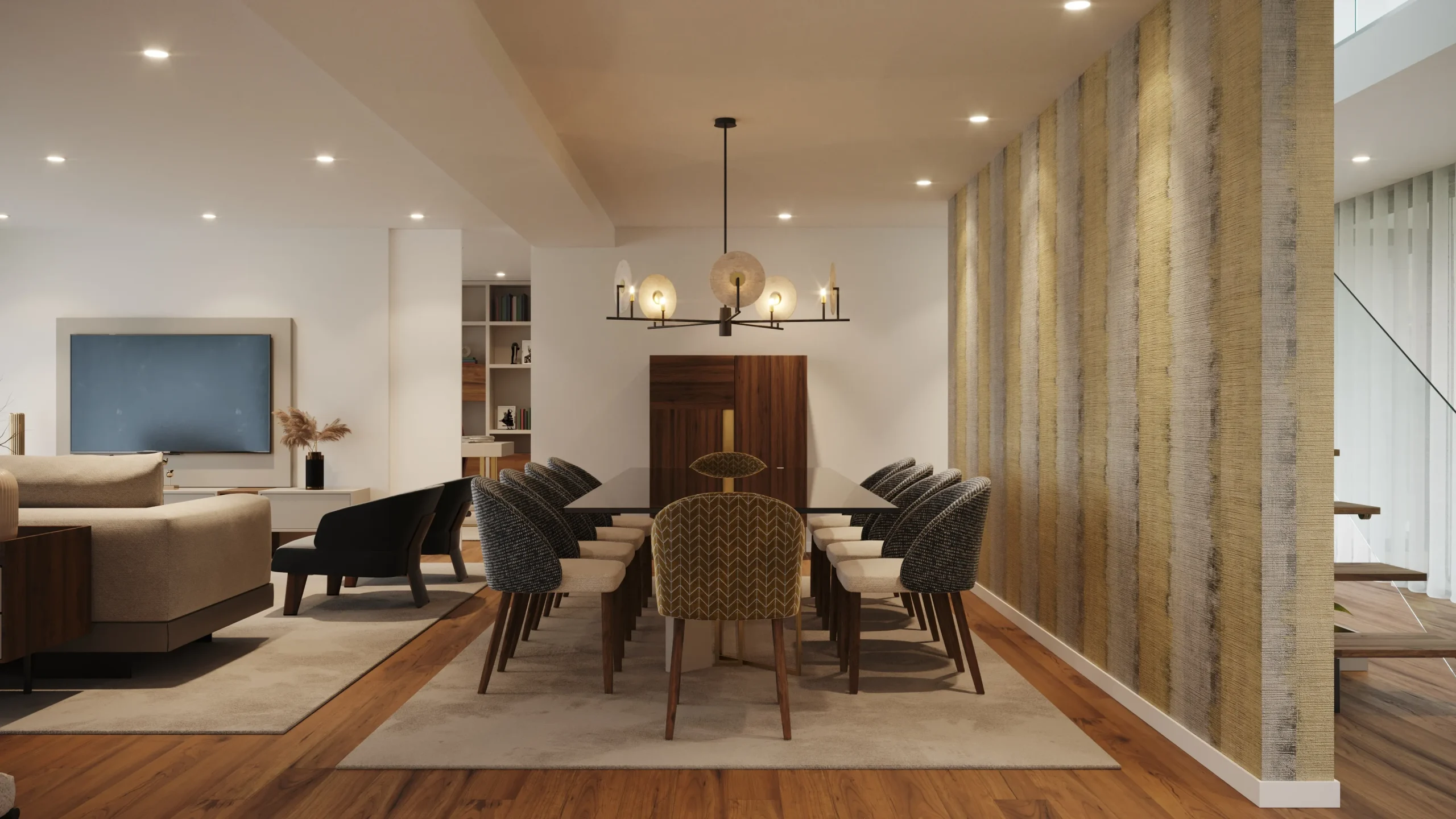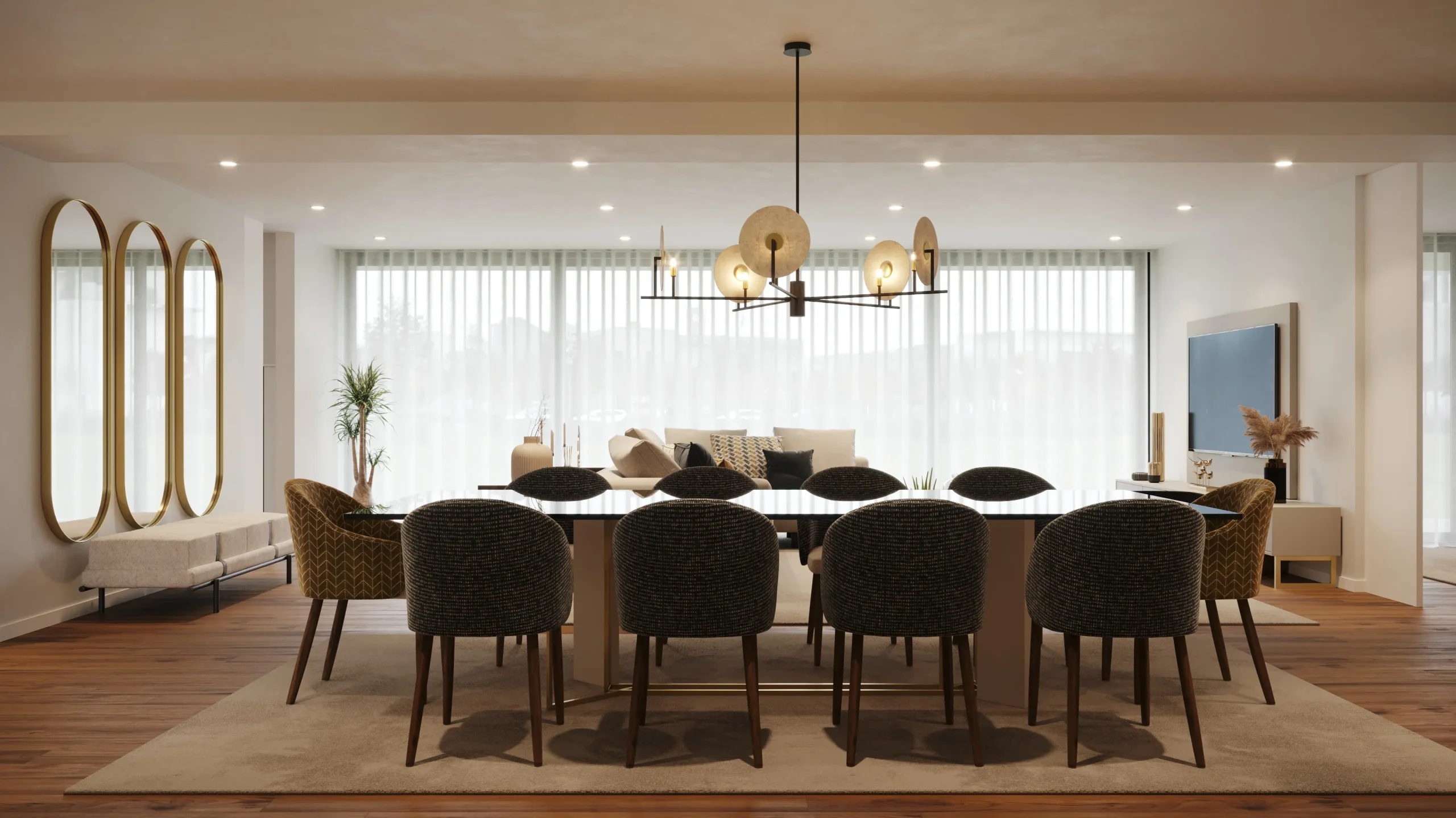 Conectividade: A transição fluida entre estar, jantar e cozinha é planejada para promover a interação social e o bem-estar.